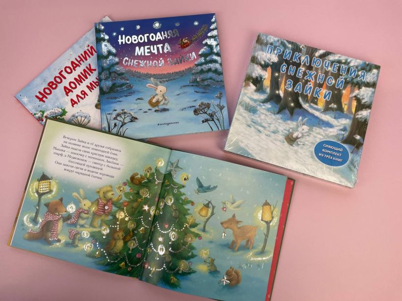 Подарочный комплект из трех книг: "Новогодняя мечта Снежной Зайки", "Новогодние подарки Снежной Зайки", "Новогодний домик для Мышки". Книги рассказывают о приключениях зверят в снежном лесу, учат верить в чудо и творить его собственными руками. Волшебные истории украшены чудесными рисунками Ребекки Харри, сверкающими как сугробы в лунную ночь.