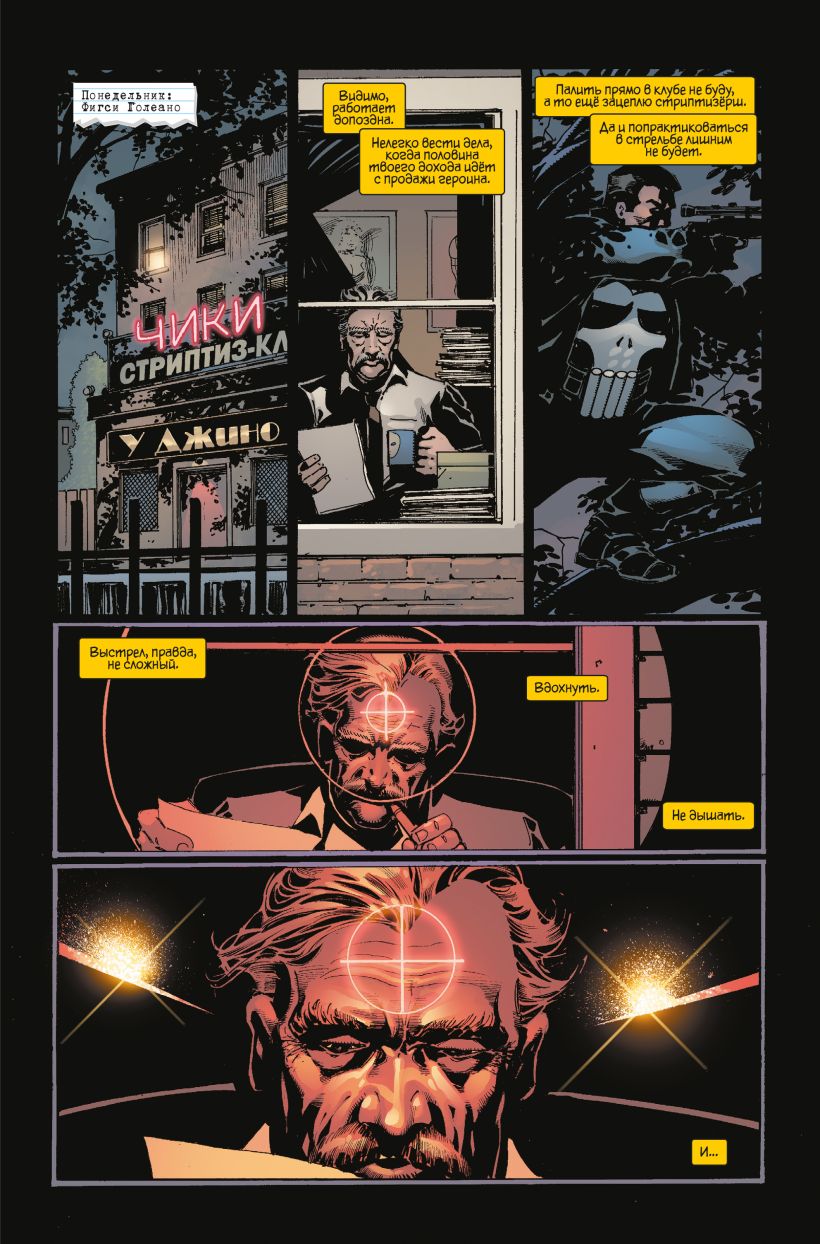 История наполнена жестокостью, перестрелками, колоритными персонажами и фирменным чёрным юмором знаменитого автора. А его верный соратник Стив Диллон в своём фирменном стиле оживил безумный сценарий. Вы же всегда хотели увидеть, как Фрэнк Касл бьёт по морде белого медведя?