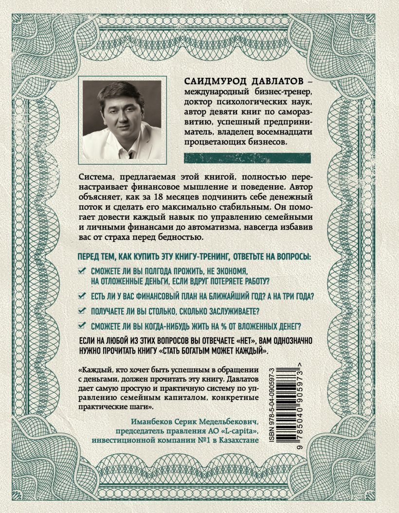 Саидмурод Давлатов – бизнес-коуч, автор бестселлеров по психологии богатства, человек, который сумел пройти путь от грузчика до успешного предпринимателя, владельца и совладельца 18 компаний