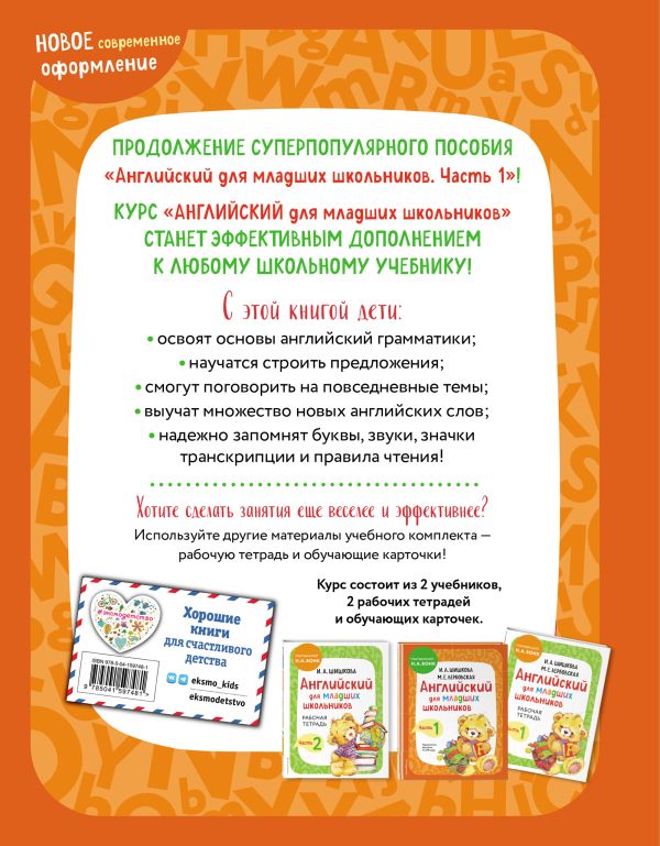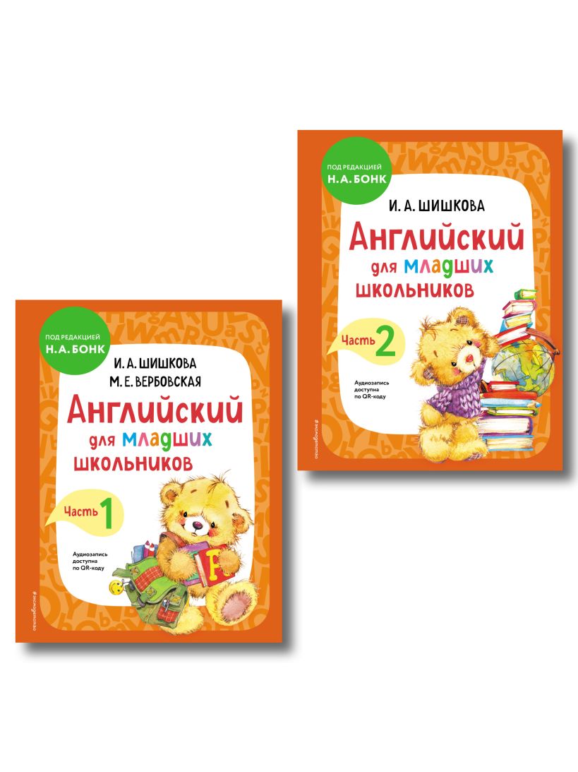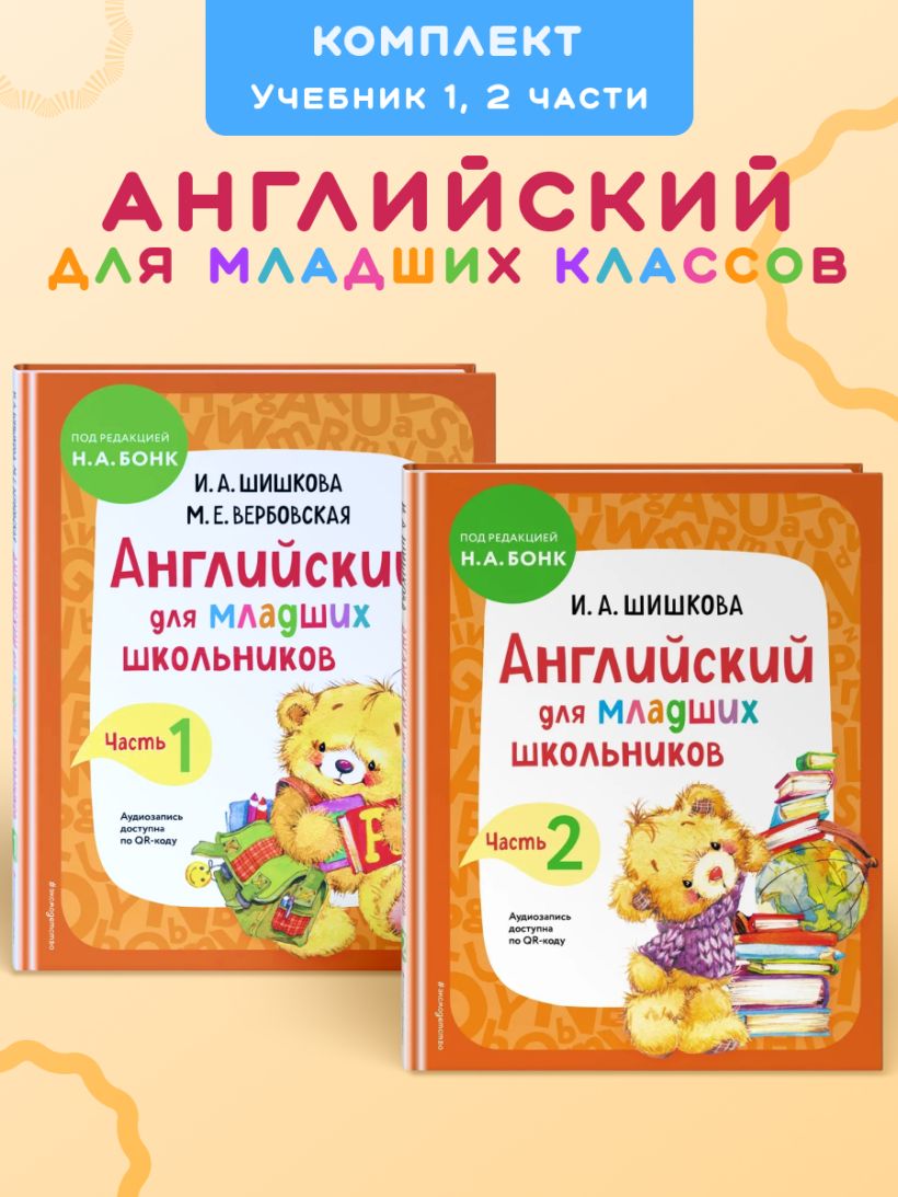 В комплект по английскому языку автора И. А. Шишковой входят книги «Английский для младших школьников. Учебник. Часть 1» и «Английский для младших школьников. Учебник. Часть 2».