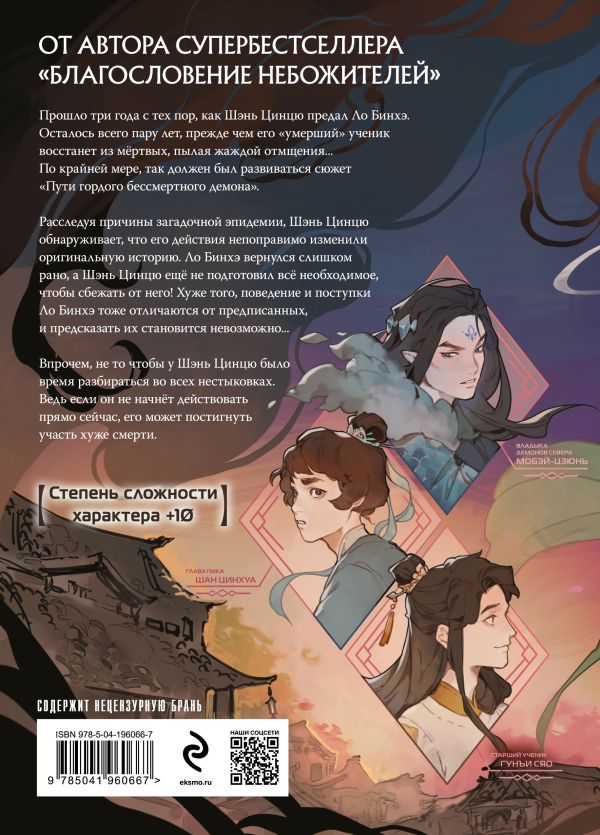 Чем дальше, тем больше секретов "Пути Гордого Бессмертного Демона" открывается Шэнь Цинцю... включая прошлое настоящего хозяина его тела. И он понимает, что должен принять Ло Бинхэ таким, какой он есть. Иначе они оба погибнут... А с ними, возможно, весь мир.