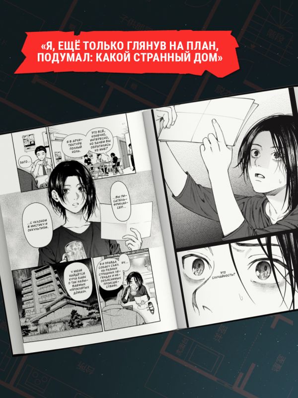 Когда ко мне обратился старый приятель с просьбой взглянуть на необычный план дома, который он собирался купить, мое внимание привлекло загадочное пустое пространство на первом этаже. Поэтому я написал знакомому архитектору Курихаре. Он сразу заинтересовался нестандартной планировкой, отметив несколько странностей: детскую без окон, подозрительное расположение комнат и тайный проход… Курихара выдвинул безумную теорию, которая ею бы и осталась, если бы позднее рядом с домом не нашли расчлененный труп без кисти левой руки.