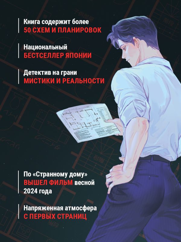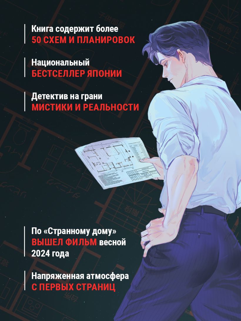 КНИГА В НЕОБЫЧНОМ ФОРМАТЕ ФУДОСАН-МИСТЕРИ, ГДЕ РАССЛЕДОВАНИЕ ПОСТРОЕНО НА ЧЕРТЕЖАХ И СХЕМАХ ЗАГАДОЧНОГО ДОМА