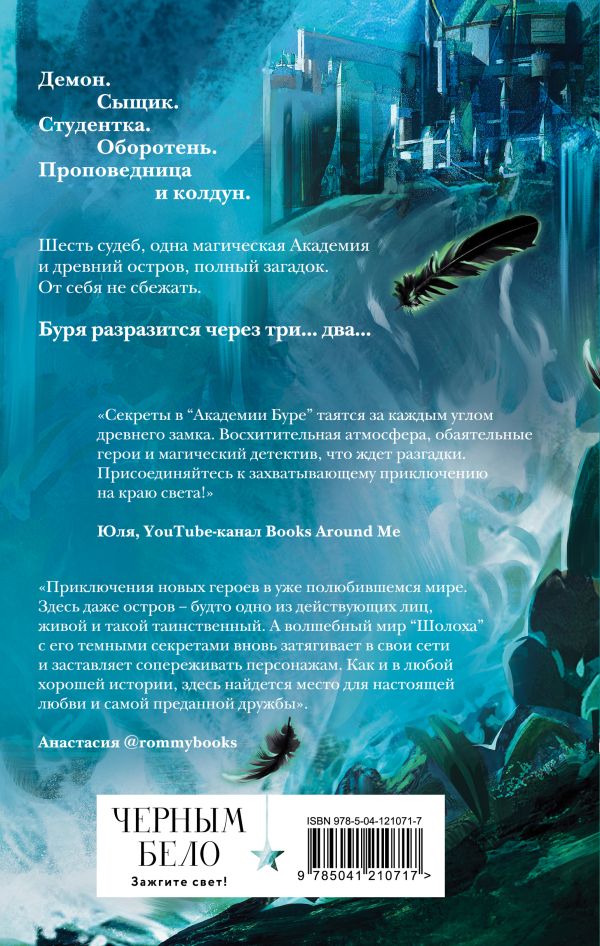 Самостоятельные романы, объединённые в один цикл: каждая книга — новая история, разные персонажи в центре головокружительных событий. Познакомьтесь с талантливой Тинави и пленительным Полынем в книгах "Тень разрастается" и "Призрачные рощи", с удивительной Ладиславой Найт и детективом Берти Голден-Халлой в "Академии Буре", с воровкой Джеремией и аристократом Тилвасом в "Ордене Сумрачной Вуали" и окунитесь в новое приключение вместе с Тинави, Берти и таинственным возницей Силграсом в "Долине Колокольчиков".