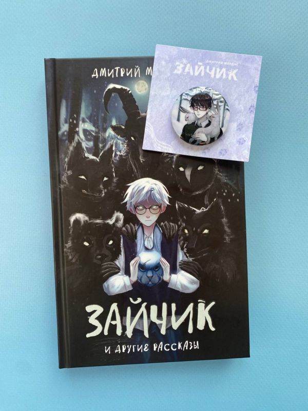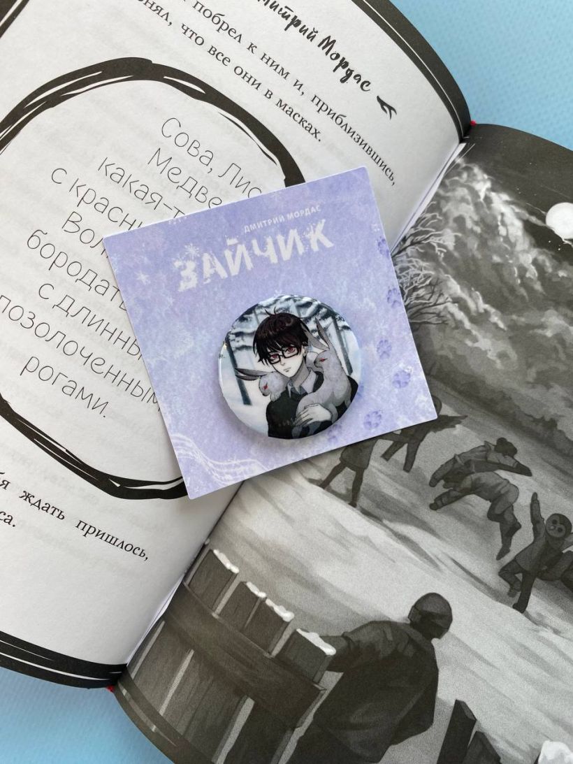 В комплект входит сборник рассказов Дмитрия Мордаса и стильный тематический значок с главным героем «Зайчика»!
