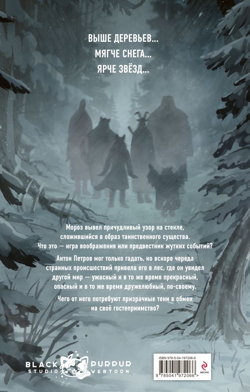 Антон Петров — простой школьник, который переехал вместе с родителями и сестрой в поселок… Обыденность вскоре оборачивается причудливыми узорами на скованном морозом окне. Что это, лишь игра воображения? Или тени, пришедшие из леса, чтобы получить то, что им причитается?.. Главному герою предстоит выяснить это, а также сделать выбор — погрузиться в мир, который переливается обманчивыми красками, или же противостоять ему во что бы то ни стало.
