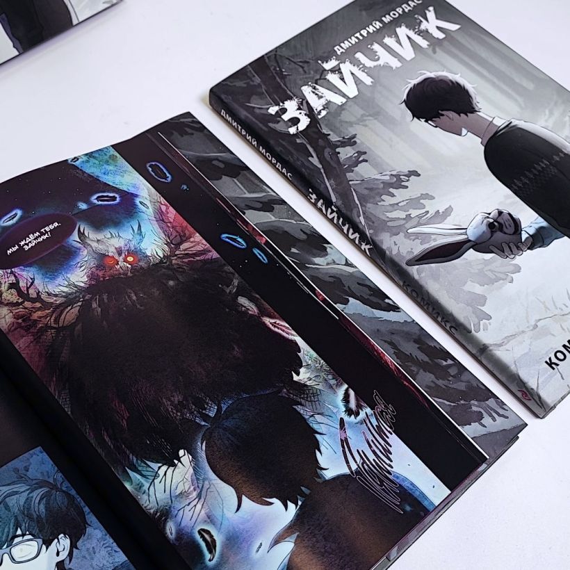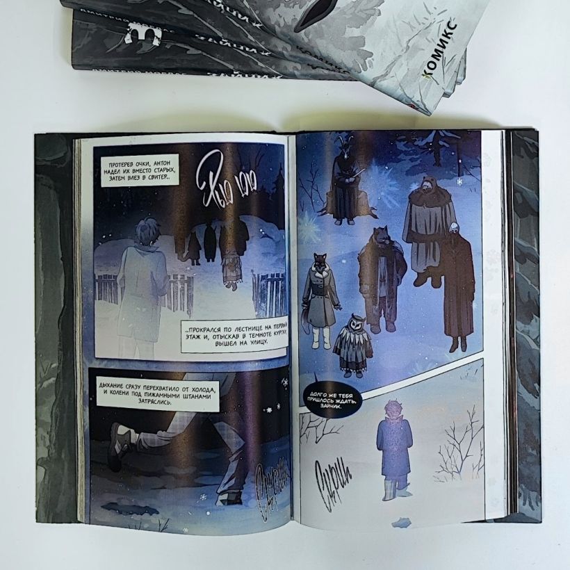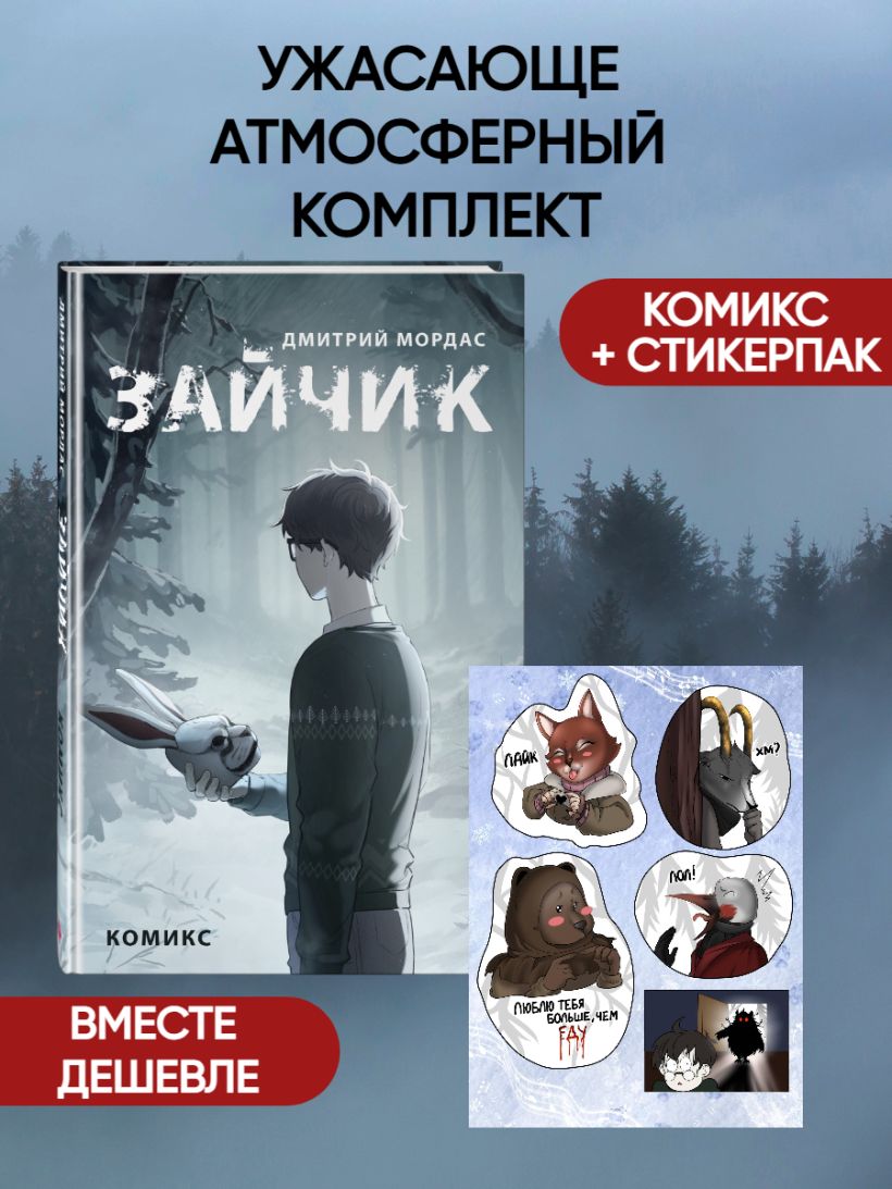 В комплект входит пугающая атмосферная история в формате комикса и забавный стикерпак!