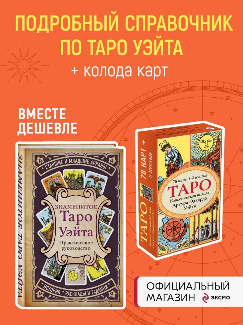 Комплект из книги и колоды. В комплекте: Знаменитое Таро Уэйта и Таро. и Классическая колода Артура Эдварда Уэйта (78 карт, 2 пустые в коробке)