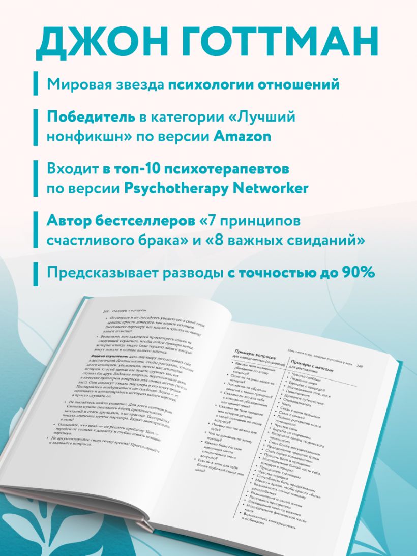 «Новая книга Джона и Джули Готтман объединяет весь их опыт научных исследований отношений и дает ключи к любви и умению управлять конфликтом так, чтобы вы подружились с ним». — Мария Кривощапова-Демина, сертифицированный готтман-терапевт и преподаватель