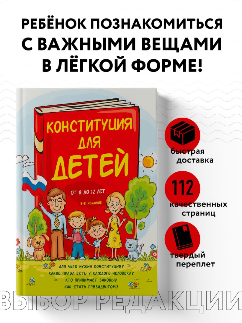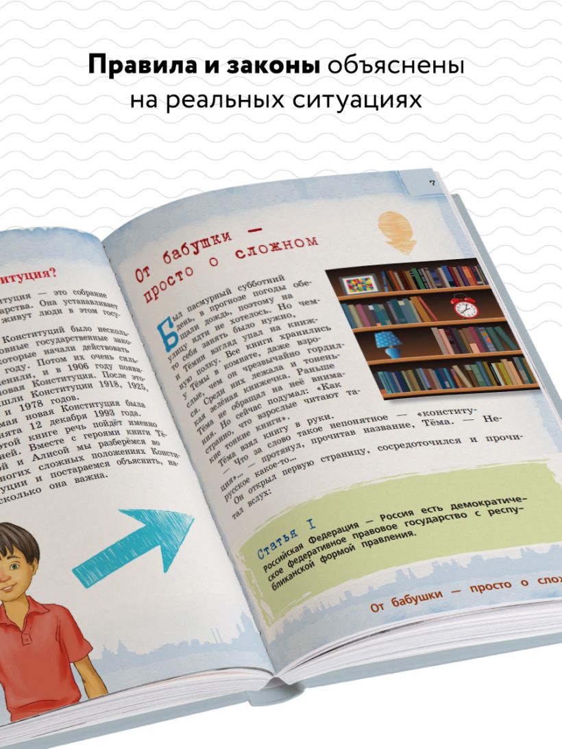 Здесь в легкой и интересной форме рассказано о самых основных законах нашей страны: о государственных символах, правах человека, обязанностях человека в обществе, о функциях президента, правительства и важности этих законов в жизни любого человека. При этом вы не найдете здесь скучного перечисления статей, все правила поведения в обществе привязаны к конкретным случаям, которые часто можно увидеть в реальной жизни так, что сразу становится ясна причина их появления и необходимость. С этой книгой ребенку не придется скучать. Множество качественных ярких иллюстраций и фотографий и описание различных жизненных ситуаций заинтересуют каждого ребенка, взявшего в руки эту книгу.