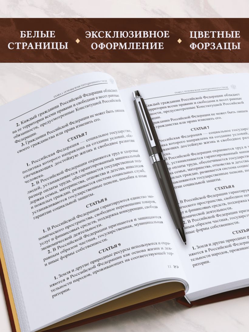 Издание не только содержит текст Конституции РФ, но и имеет красивое, лаконичное оформление.