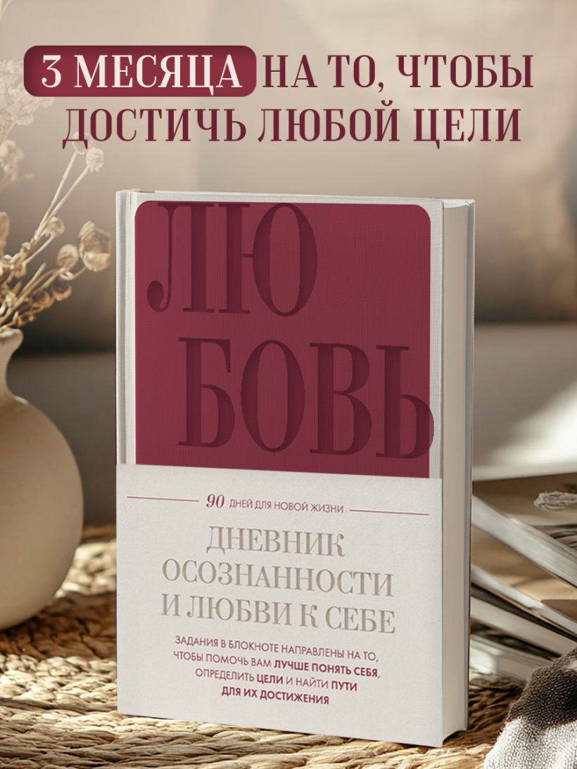 Дневник осознанности и любви к себе. 90 дней, которые станут началом новой жизни (бордовый)