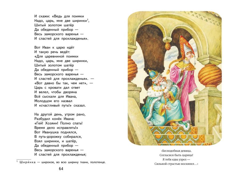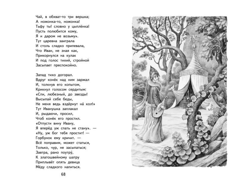 Сказка «Конёк-горбунок» — настоящий шедевр русской литературы. На страницах книги читателей ждёт встреча с волшебными существами, царями и придворными, добрыми и злыми людьми. Поучительный сюжет расскажет детям о справедливости, настоящей дружбе, честности и вере в собственные силы.