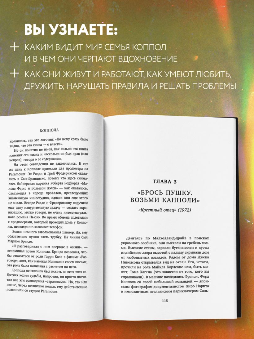 Фрэнсис Форд Коппола — один из величайших режиссеров современности и глава одной из самых влиятельных династий американского кинематографа. Однако так было не всегда. Выходец из семьи итальянских иммигрантов, большую часть детства он был прикован к постели из-за болезни и сменил более 20 школ. Спустя много лет он станет тем, кто экранизирует легендарную сагу «Крестный отец», снимет «Апокалипсис сегодня» и соберет множество престижных кинонаград. София Коппола — истинная дочь своего отца, смелая и дерзкая. Повзрослев, она не захотела остаться в тени своего родителя и сделала головокружительную карьеру. Но чего это стоило им обоим?