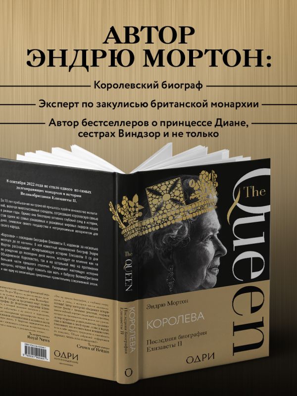 «Королева» — последняя биография Елизаветы II, изданная за несколько месяцев до ее кончины. В ней известный королевский биограф Эндрю Мортон рассказывает исчерпывающую историю Елизаветы II со дня ее рождения до последних дней жизни, исследует ее влияние как на Объединенное королевство, так и на остальной мир на протяжении большей части прошлого столетия. Раскрывает настоящую историю женщины, которую будут помнить как мать и бабушку Великобритании и как одну из величайших суверенных правительниц современной эпохи.