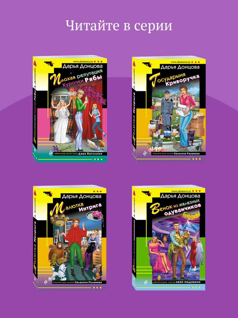 Больше всего дети любят делать то, что родители просят их не делать. Иван Подушкин думал, что его уже ничем не удивить, но судьба подкинула ребус. К нему обращается Светлана Игоревна Веселова. Капризная миллионерша уверяет, что ее дочь-паиньку подменили наглой самозванкой, которая сбежала, прихватив миллион рублей. Подушкин надеется быстро разобраться с проблемой: наверняка девушке надоело служить домработницей у своей неласковой родительницы. Но зря! Бедняга Иван еще не знает, что на самом деле он сам - главная марионетка в грандиозном спектакле, где вместо аплодисментов прозвучит выстрел из прошлого. Дарья Донцова — самый популярный и востребованный автор в нашей стране, любимица миллионов читателей. В России продано более 200 миллионов экземпляров ее книг. Ее творчество наполняет сердца и души светом, оптимизмом, радостью, уверенностью в завтрашнем дне! «Донцова невероятная работяга! Я не знаю ни одного другого писателя, который столько работал бы. Я отношусь к ней с уважением, как к образцу писательского трудолюбия. Женщины нуждаются в психологической поддержке и получают ее от Донцовой. Я и сама в свое время прочла несколько романов Донцовой. Ее читают очень разные люди. И очень занятые бизнес-леди, чтобы на время выключить голову, и домохозяйки, у которых есть перерыв 15—20 минут между отвести-забрать детей». — Галина Юзефович, литературный критик