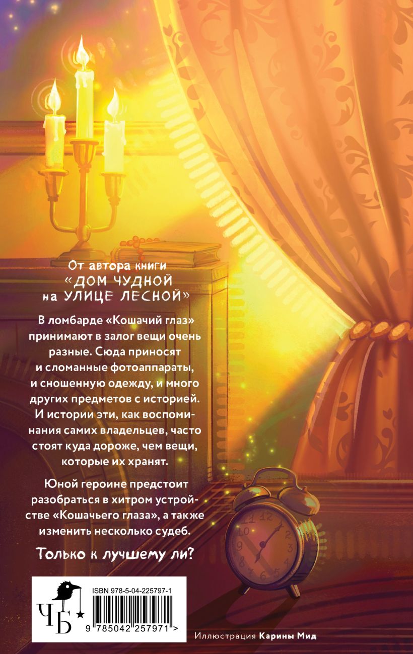 В ломбарде "Кошачий глаз" принимают в залог вещи очень разные. Сюда приносят и сломанные фотоаппараты, и сношенную одежду, и много других предметов с историей. И истории эти, как воспоминания самих владельцев, часто стоят куда дороже, чем вещи, которые их хранят. Юной героине предстоит разобраться в хитром устройстве "Кошачьего глаза", а также изменить несколько судеб. Только к лучшему ли?