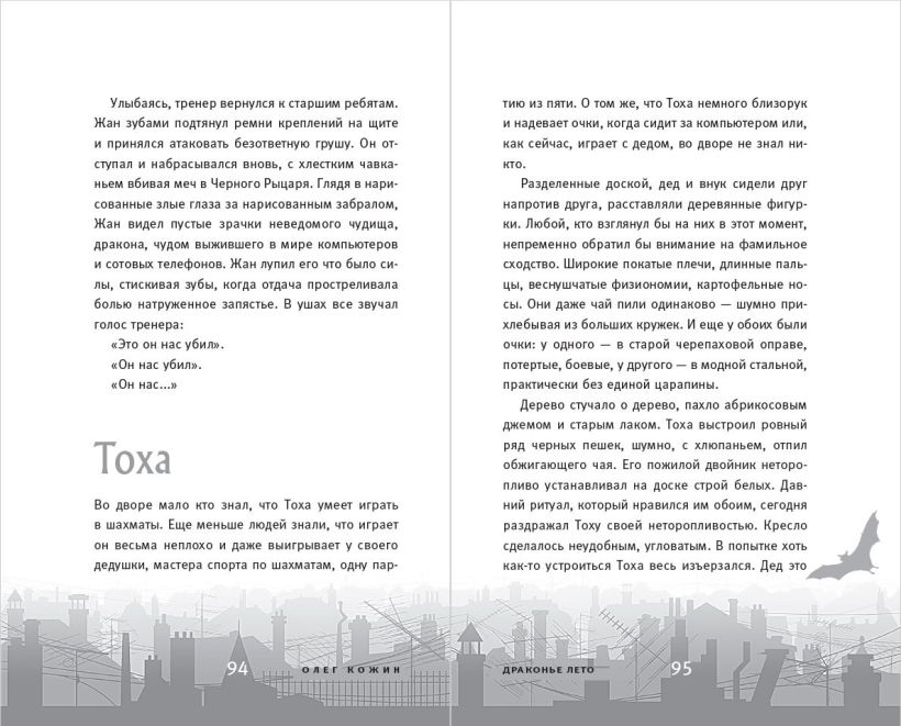 Это лето обещало быть жарким, длинным и скучным. Четверо друзей — Жан, Серый, Тоха и Юрка — собирались провести его в городе. Кататься на великах, играть в компьютерные игры, есть мороженое и… совершенно не готовились ко встрече со смертельной опасностью. Но со двора и из парка исчезли птицы. Из квартир начали пропадать кошки. Большой и грозный бродячий пес обзавёлся страшными ранами на боку… Кажется, где-то рядом притаилось нечто страшное. Оно хочет есть, оно охотится. Готовы или нет — мальчишки попробуют отыскать чудовище.