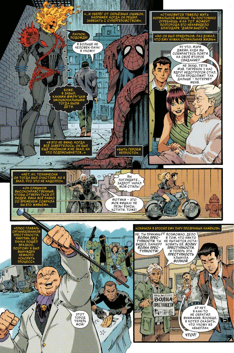 Будущая версия Фрэнка Касла – некогда Каратель, а теперь сумасшедший Космический Призрачный Гонщик – застряла в прошлом! Вернувшись назад во времени, чтобы попробовать убить Таноса во младенчестве, Касл поклялся попытаться изменить историю. Но как он мог не вмешаться, когда прибыл в прошлое и увидел рождение Фантастической Четвёрки? И с происхождением Человека-паука Фрэнк тоже напортачил. Примет ли он ношу Паука на свои шипастые плечи? С великой силой приходит и великая безответственность! А также: ещё более радикальные вмешательства в события, которые вам знакомы, вроде Второй мировой войны и одного судьбоносного дня в парке.