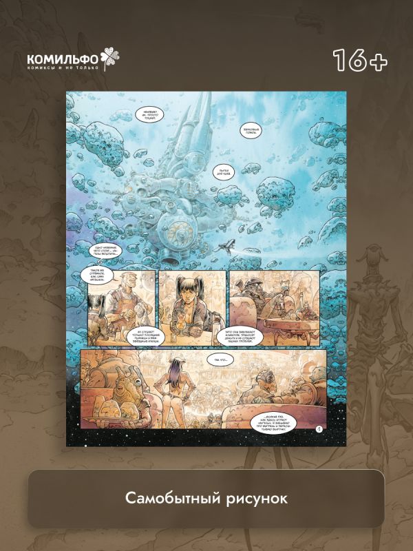 Отправляйтесь в захватывающее космическое приключение с комиксом, где дух «Звездных войн» встречается с дерзким авантюризмом «Индианы Джонса»! Яркие, детализированные иллюстрации Груна, напоминающие психоделическую эстетику Мебиуса и эпичность «Стражей Галактики», оживляют экзотические миры и харизматичных героев, а динамичный сюжет Сильвена Рунберга, полный юмора и интриг, затягивает похлеще «Ковбоя Бибопа». Этот стильный боевик — настоящий пир для глаз и must-have для фанатов научной фантастики.