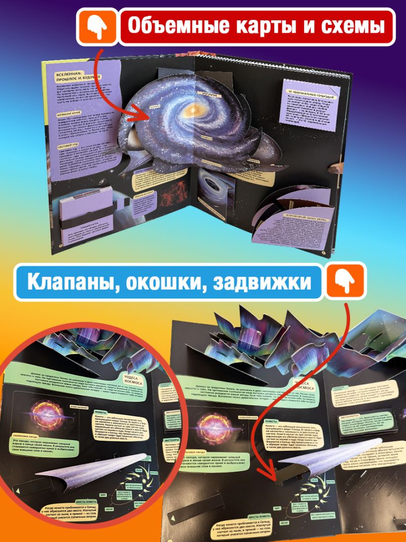 Вот это космос! Большая интерактивная энциклопедия о секретах Вселенной с объёмными деталями, окошками, задвижками, клапанами и 3D-моделями!