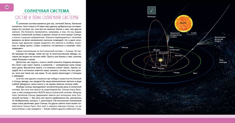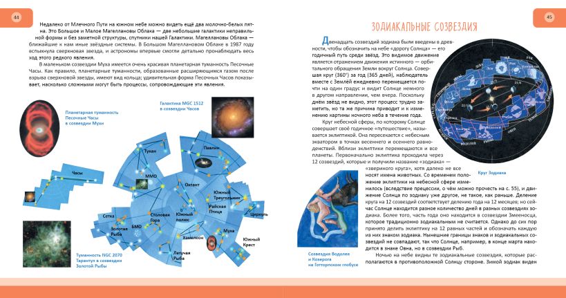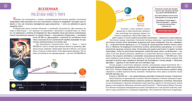 Это невероятно красочное издание входит в ТОП-100 лучших в мире книг по астрономии рейтинга Amazon. Оно посвящено одной из самых захватывающих тем — нашей Вселенной. А ещё у энциклопедии есть удивительный секрет: она светится в темноте! Читатели узнают, как образовались разные небесные тела, в чём секрет природных явлений, наблюдаемых в небе, как находить невооружённым глазом различные созвездия и планеты и многое другое. Карты небесных полушарий и сделанные своими руками астрономические инструменты помогут каждому мастерски ориентироваться в самых загадочных уголках звёздного неба! А разглядеть объекты Солнечной системе во всей их красе позволят большие и яркие фотографии. Книга будет интересна и полезна как школьникам, так и взрослым любителям космоса. Она отлично подходит для изучения всей семьёй и послужит идеальным подарком по любому поводу!