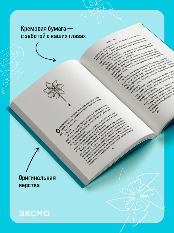 Вертушка — главный символ этой книги. Бейя, главная героиня, выбрала изображение урагана в качестве памятной татуировки, а Самсон выбрал вертушку. На обеих татуировках героев запечатлено вращение. У нее — разноцветный вихрь. У него — изящный и яркий образ. Таким было их лето. Таким оно и останется с ними. Навсегда.