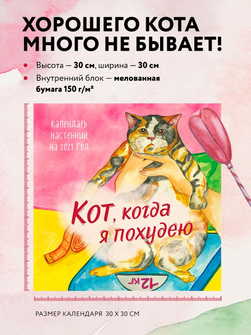 Кот, когда я похудею. Календарь настенный на 2024 год (300х300)