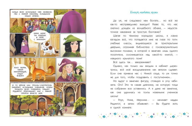 Но с самого начала всё идёт не по плану — новоиспечённые подружки всё время ругаются, а кошка-напарница вдруг пропадает. Удастся ли девушке справиться со всеми трудностями, которые уготовил первый учебный год, и раскрыть свой волшебный дар?