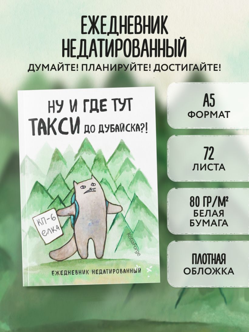 Ну и где тут такси до Дубайска?! Ежедневник недатированный (А5, 72 л.). Коллекция ежеденевников "Коты-туристы"