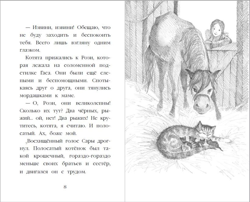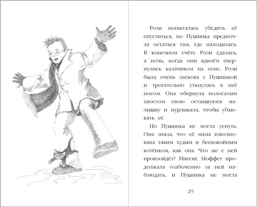 Однажды мечта Эми исполнилась — на пороге её домика на дереве появилась маленькая чёрно-белая кошечка. Девочка давно упрашивала родителей завести питомца, а кошечка оказалась ничьей, поэтому Эми решила, что теперь просто обязана её приютить. Девочке удалось уговорить родителей, только вот она увидела объявление о пропаже с фотографией той самой кошечки… Как же Эми поступить? Каждая книга этой серии — добрая история, в которой без назидания даются уроки об отзывчивости и умении дружить. Холли Вебб давно пишет детские книги и пользуется популярностью во всем мире, но особенно её полюбили в России. Серия «Добрые зверята» неизменно входит в списки бестселлеров. Множество родителей рассказывают, что их дети просто влюбились в эти истории и начали сами читать. Книга издана на белой бумаге, внутри достаточно крупный шрифт и потрясающей красоты чёрно-белые иллюстрации, которые позволят детям переключать внимание, не нагружая чрезмерно глаза. Книги подходят для детей от 6—7 лет. Отличный подарок на день рождения, для первоклассника или ребёнка постарше.