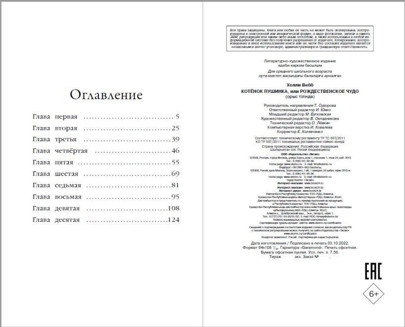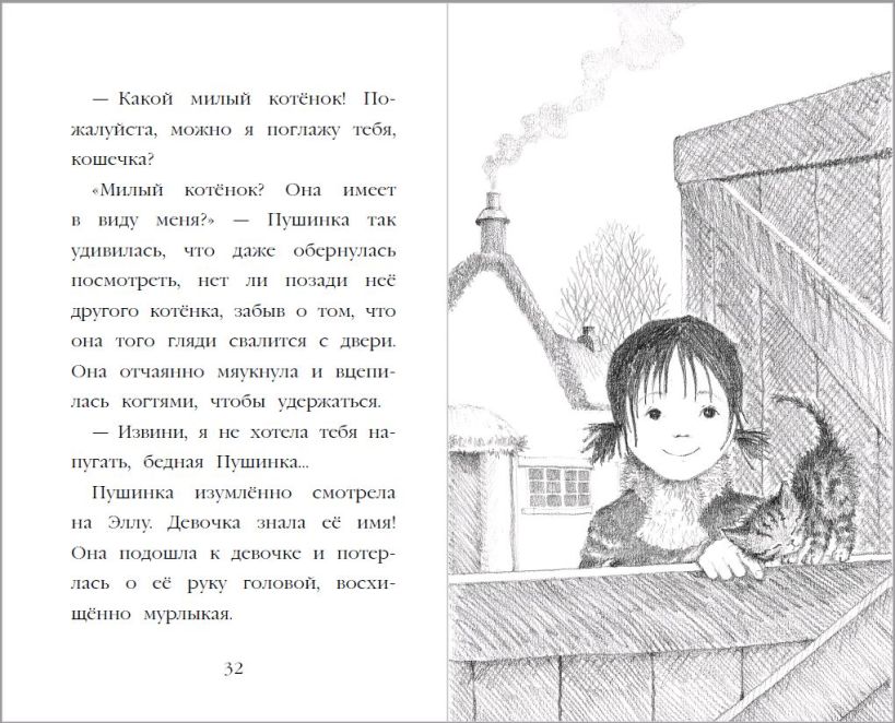 Котёнок Пушинка нашла котёнка Снежинку в пустом и холодном доме. Нашла конечно, не сразу – сначала у Пушинки было приключение. И теперь она не знает, как помочь Снежинке, ведь Пушинка лишь немного старше. Может быть позовут на помощь зимнее волшебство? Каждая книга этой серии – добрая история, в которой без назидания даются уроки о отзывчивости и умении дружить. Холли Вебб давно пишет детские книги и пользуется популярностью во всем мире, но особенно её полюбили в России. Книги Холли Вебб неизменно входят в списки бестселлеров. Множество родителей рассказывают, что их дети просто влюбились в эти истории и начали сами читать. На обложке книги сияют ёлочные шары! Книга издана на белой бумаге, внутри достаточно крупный шрифт и потрясающей красоты чёрно-белые иллюстрации, которые позволят детям переключать внимание, не нагружая чрезмерно глаза. История подходит для детей от 6-7 лет. Отличный подарок на день рождения, для первоклассника или ребенка постарше.