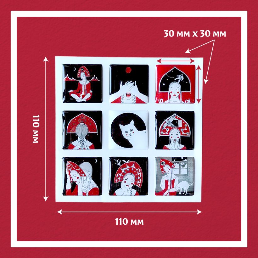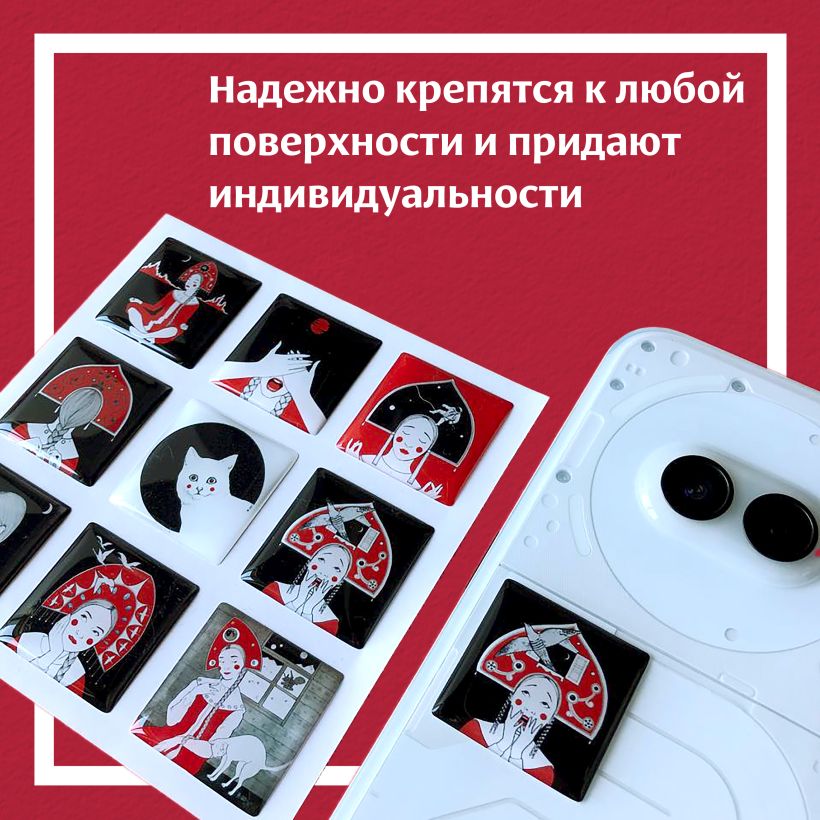 Современные, хлесткие, дерзкие изображения барышень в кокошниках в виде 3D-стикеров. Очаровательный котик в центре внимания!
