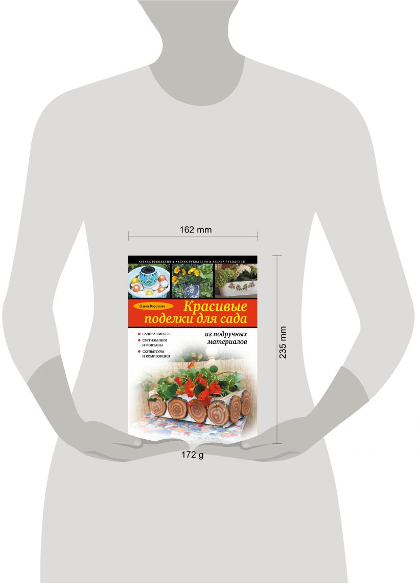 Новая книга известного российского дизайнера, писательницы и телеведущей Ольги Вороновой посвящена изготовлению из подручных материалов оригинальных и функциональных украшения для садового участка. Здесь вы найдете идеи для обновления старой мебели, изготовления и декорирования садовых светильников, фонтанчиков, садовых фигурок и целых композиций. Простые декоративные приемы, минимум инструментов, простота изготовления и нестандартный подход к решению различных декораторских задач, а также понятные описания, пошаговые цветные иллюстрации и огромное количество важных советов и рекомендаций, помогут справиться с любым изделием даже новичку и получить великолепный результат, превосходящий даже самые смелые ожидания!