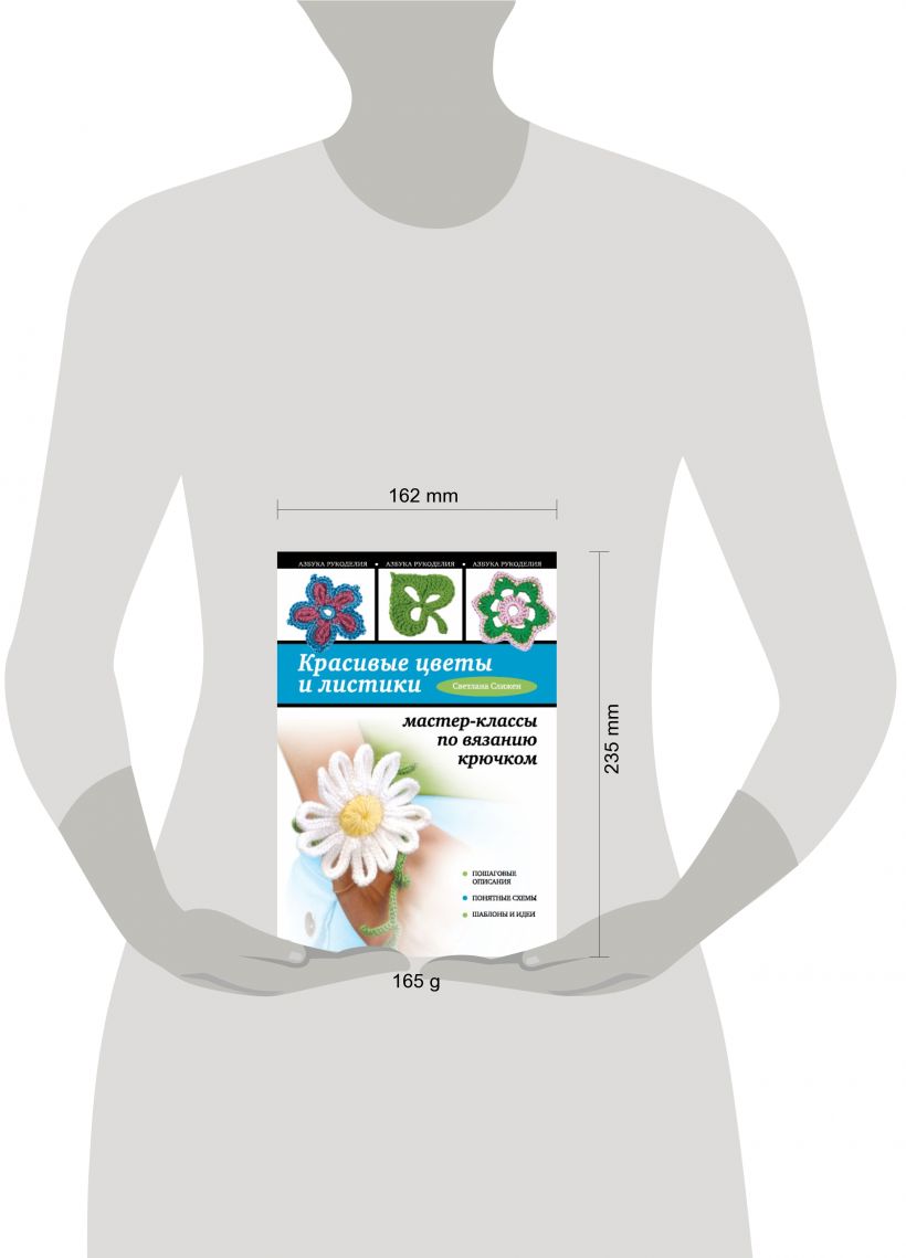 Связанные крючком цветы – очень популярные элементы современного декора: ими можно украсить заколку, любимую сумку, брелок для ключей или поместить цветы в свой интерьер. Если вы любите вязать, то вам обязательно понравятся очаровательные цветочки и листики от талантливой рукодельницы Светланы Слижен. Вместе с этой книгой у вас обязательно всё получится, даже если вы еще ни разу не пробовали вязать: вы научитесь выбирать пряжу и крючки, вязать все основные виды столбиков, формируя плоские и объемные детали и сможете украсить свою жизнь очаровательными аксессуарами из ярких цветов – плоских и объемных, ярких и разноцветных, привычных и фантазийных. В этом вам помогут пошаговые фотографии и понятные описания к каждой модели.