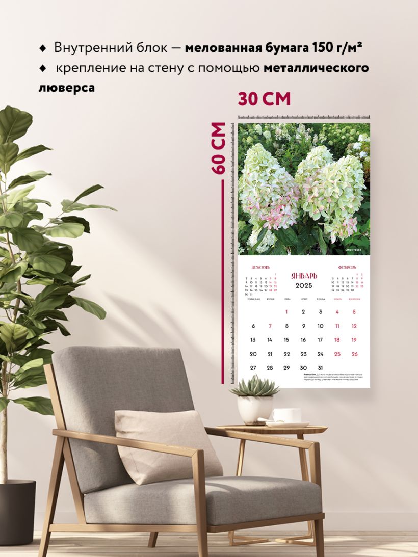 Гортензии в саду. Календарь настенный на 2025 год (300х300 мм)