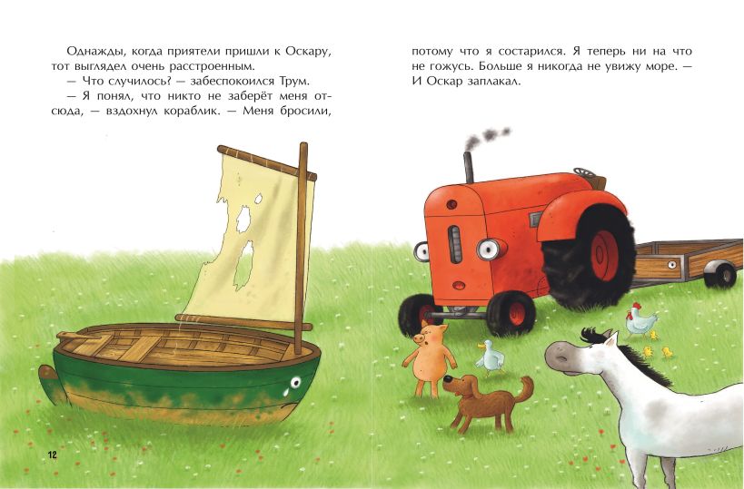 На лугу возле фермы «Под старым дубом» стоял кораблик по имени Оскар. Когда-то он ходил по морям вместе с огромными судами и видел самые большие города. А теперь кораблик состарился, его парус прохудился, а краска на борту облезла. Каждый день Оскар с нетерпением ждал, что завтра его заберут и он вновь отправится в путешествие.