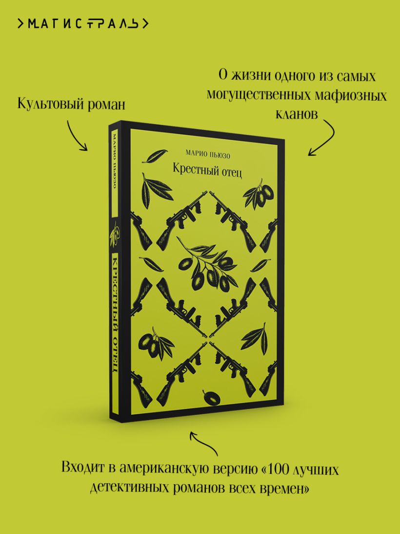 «Крестный отец» давно стал культовой книгой. Пьюзо увлекательно и достоверно описал жизнь одного из могущественных преступных синдикатов Америки — мафиозного клана дона Корлеоне, дав читателю редкую возможность без риска для жизни заглянуть в святая святых мафии.