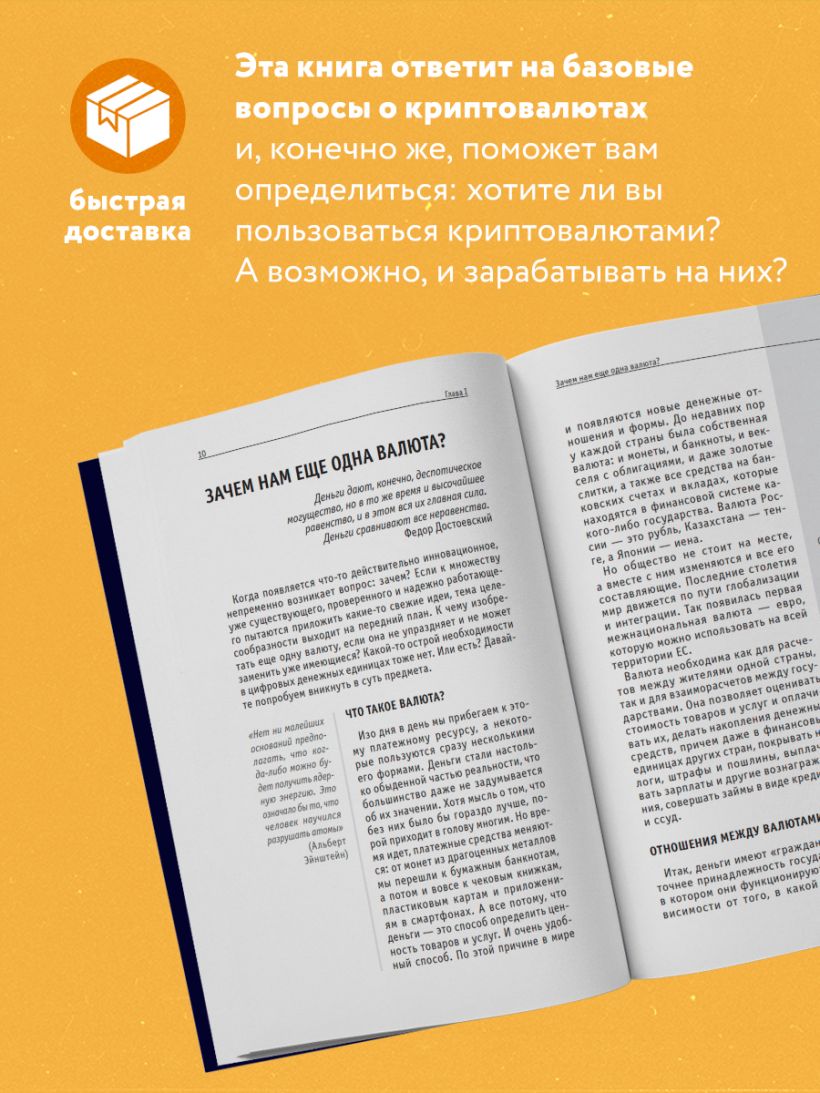 Криптовалюты появились совсем недавно, но уже вызывают жаркие дискуссии и обсуждения. Кто-то считает это невероятным рывком в развитии технологий и финансов, а кто-то — величайшей финансовой пирамидой XXI века. Эта книга поможет вам составить свое собственное мнение, простым и доступным языком объясняя механизм работы, принципы хранения и все подводные камни, связанные с криптовалютами. Вы узнаете, чем биткоин отличается от других криптовалют и для чего они все нужны в принципе. А мягкая обложка и удобный карманный формат позволяют читать книгу где угодно — в метро, дома, в дороге, на отдыхе и т.д.