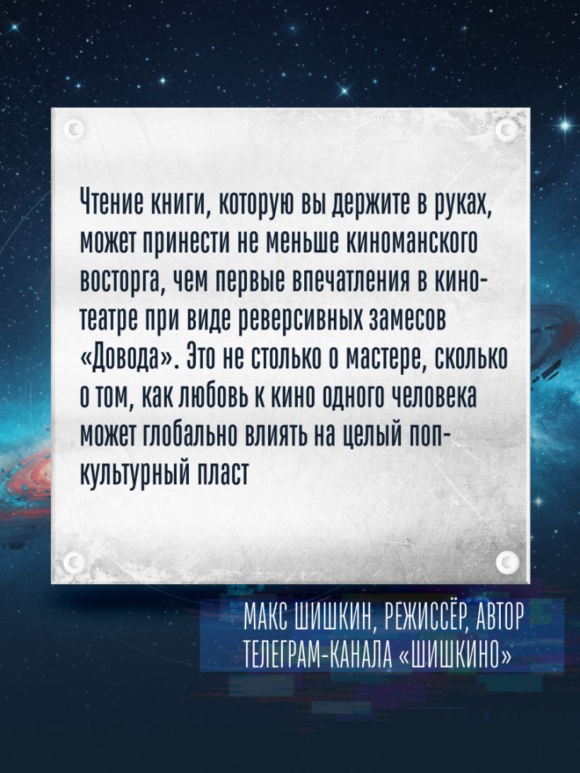 Эта книга анализирует творчество Кристофера Нолана через призму сюжетных структур, научных метафор и игр с восприятием. Автор исследует, как режиссёр использует время, память и иллюзию в фильмах “Начало”, “Интерстеллар” и “Престиж”.