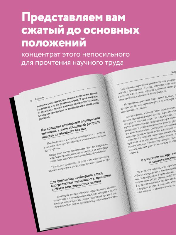 Считается, что Иммануил Кант открыл новую эру в развитии философской мысли и совершил «коперниканскую революцию» в философии. Его «Критика чистого разума» — одно из основополагающих сочинений в истории философии. Этот запутанный труд — результат нескольких десятилетий исследований великого мыслителя, он вызывал сложности в понимании даже своими первыми читателями.