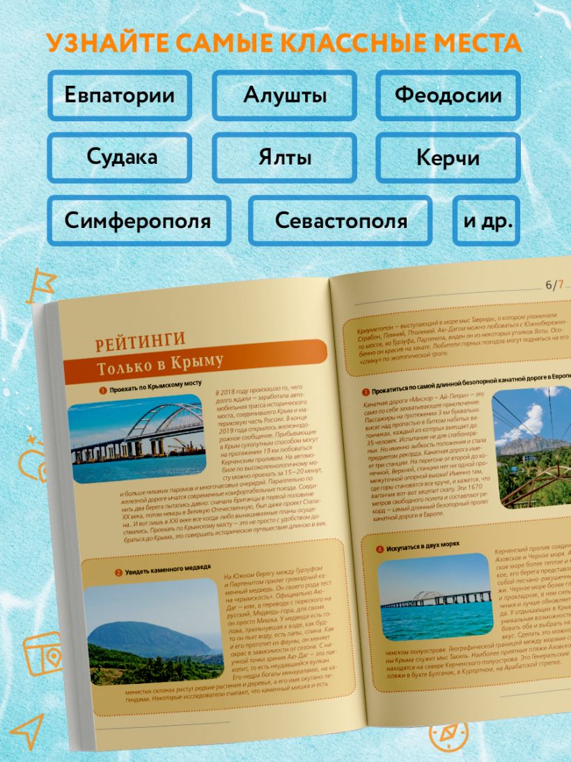 Абсолютно новый путеводитель по Крыму! Внутри содержится информация о таких городах полуострова, как Ялта, Симферополь, Судак, Алушта, Севастополь, Евпатория, Феодосия, Керчь и др.
