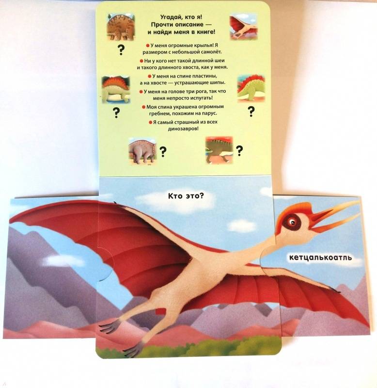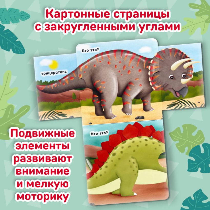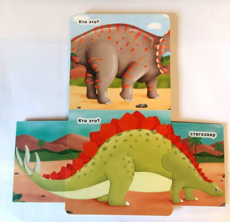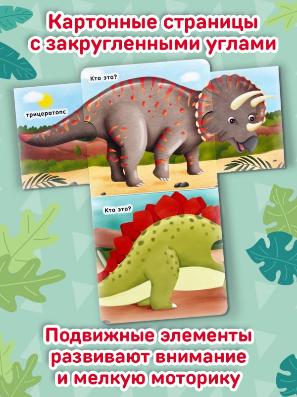 Представляем вам интересную и развивающую книжку-игрушку, с помощью которых ваш малыш легко выучит виды динозавров. На каждой странице ему предстоит раздвигать страницы, чтобы получилось целое изображение, а затем найти динозавра по описанию. Книга напечатана на плотном картоне, а у страниц — закруглённые углы, чтобы работать с ней было безопасно. Тренируйте мелкую моторику, изучайте новые слова и тренируйте мышление вместе с нами!