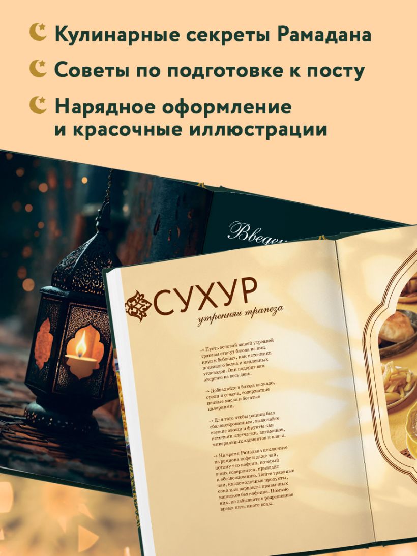 Рамадан — священный месяц для любого мусульманина. Время поста и молитв, самосовершенствования и пути к Всевышнему. Непростое испытание строгим отказом от еды и воды от рассвета до заката. Чтобы позаботиться о здоровье, своем и своей семьи, важно в сухур и ифтар готовить питательные и сбалансированные блюда — утром заряжающие энергией, вечером сытные, но легкие, чтобы не переедать и просыпаться бодрым на следующий день. Рецепты, собранные в этой книге, помогут вам разнообразить стол во время утренней и вечерней трапезы. Они современные, разработанные с учетом требований нутрициологии. А блюда, которые вы по ним приготовите, получатся не только полезными, но и яркими, благоухающими специями. С ними у вас будет достаточно сил, чтобы достойно держать пост, ниспосланный милостью Аллаха.