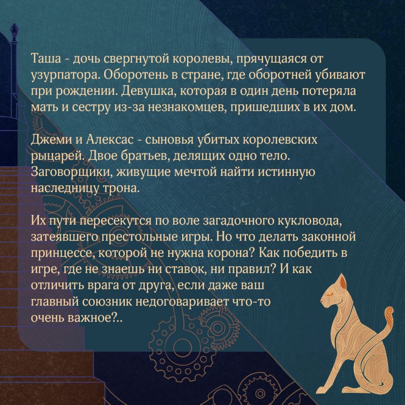 Их пути пересекутся по воле загадочного кукловода, затеявшего престольные игры. Но что делать законной принцессе, которой не нужна корона? Как победить в игре, где не знаешь ни ставок, ни правил? И как отличить врага от друга, если даже ваш главный союзник недоговаривает что-то очень важное?..