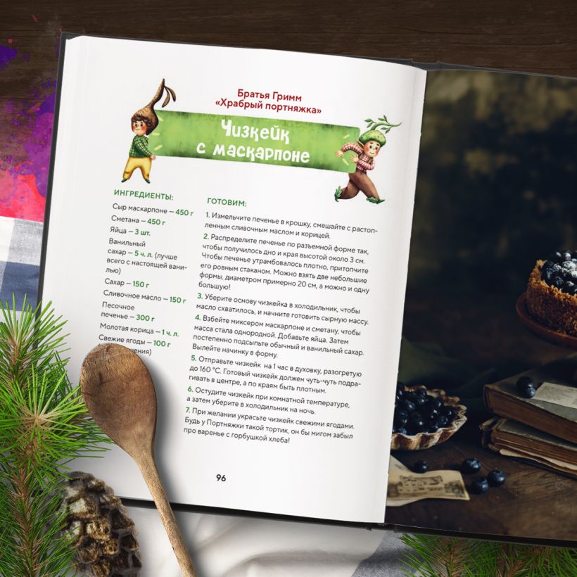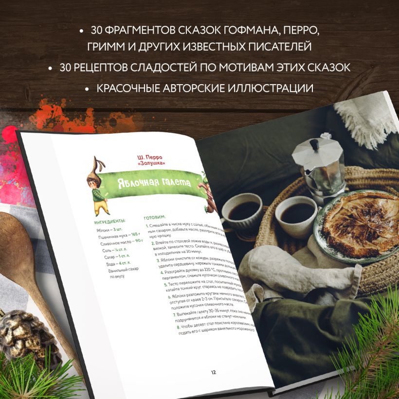 Каждый день открывайте новую страницу, вспоминайте классические истории братьев Гримм, Шарля Перро, Ганса-Христиана Андерсена, а затем приготовьте по мотивам этих сказок вкусное блюдо. А вечером, перед сном, перечитайте те самые сказки и окунитесь в атмосферу детства!