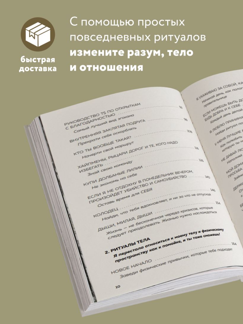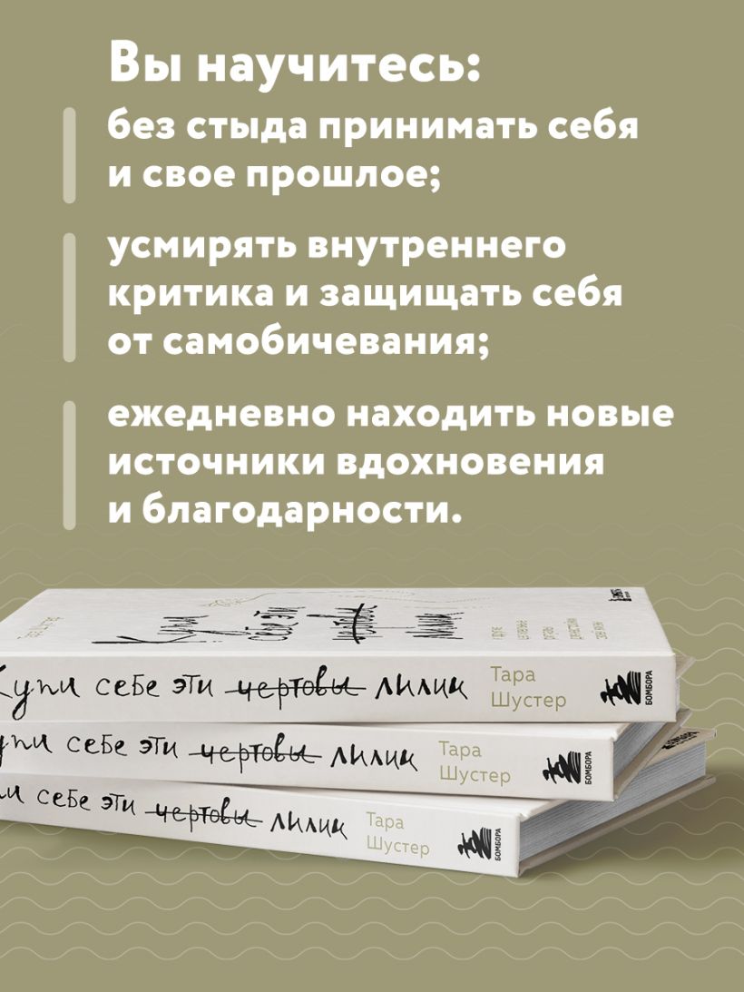 Эта книга — дорожка из хлебных крошек, которые ведут сквозь темный лес к теплу и свету. Написанная Тарой Шустер, талантливым сценаристом и телеведущей, она учит создавать внешние опоры из маленьких целительных ритуалов, вроде спонтанной покупки любимых цветов. Учит принимать свое тело, любить себя, держать плечи расправленными, а сердце — открытым. Очень практичная и обволакивающе теплая, эта книга помогает преодолеть душевные травмы и начать жить в полную силу.