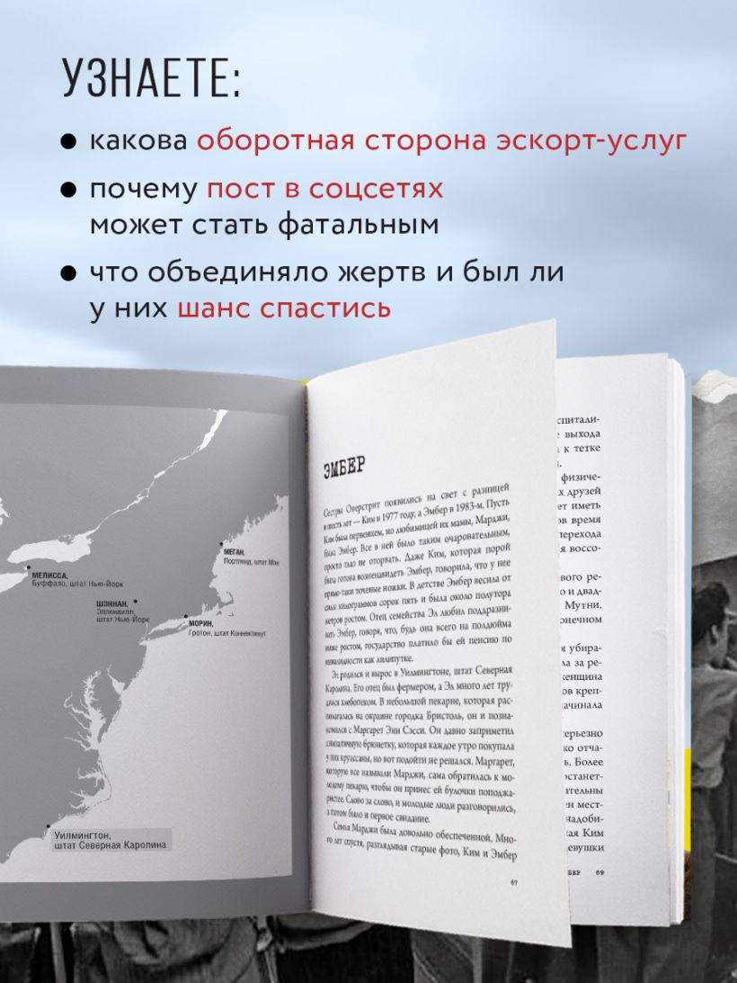 Поздним весенним вечером Шэннан Гилберт приехала в Лонг-Айленд и пропала. Никто не придал этому значения, ведь все прекрасно знали, что она предоставляет эскорт-услуги по объявлению, а, следовательно, может быть вовлечена в любые темные дела. Полиция тоже не приложила достаточных усилий к ее поискам, пока семь месяцев спустя у шоссе не были найдены тела четырех девушек. Шэннан среди них не оказалось. Что связывало этих девушек? Кто их убил? Что скрывали жители Лонг-Айленда?