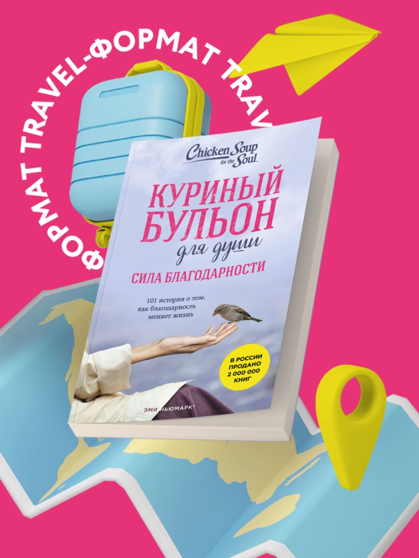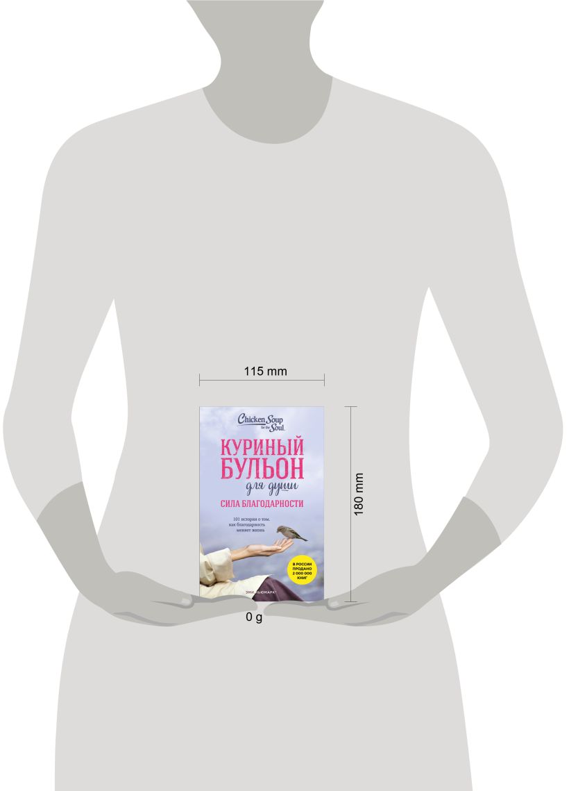 НОВИНКА В СЕРИИ «КУРИНЫЙ БУЛЬОН ДЛЯ ДУШИ». ПРОДАНО БОЛЬШЕ 2 000 000 книг. В детстве, когда вы болели, ваша бабушка давала вам куриный бульон. Сегодня питание и забота нужны вашей душе. Маленькие истории из «Куриного бульона» исцелят душевные раны и укрепят дух, дадут вашим мечтам новые крылья и откроют секрет самого большого счастья — счастья делиться и любить. Счастье — это не удачное совпадение и не подарок судьбы. Это состояние, которое можно создать своими руками — шаг за шагом, правильными мыслями и хорошими поступками. В новом сборнике «Куриного бульона» собраны сотни жизненных историй людей, которые нашли личный рецепт счастья. Даже один маленький шаг способен изменить жизнь к лучшему! Каждый день на работе в супермаркете Триша испытывала раздражение и стресс, но улыбки и радушие нового менеджера вдохновили ее взглянуть на рабочие будни иначе. Семейные застолья оборачивались для Мелоди изнурительным мытьем посуды, пока она не решила увидеть в этом занятии приятное — благодарность за время, проведенное с родными. Элисон пережила тяжелый период и думала, что не сможет оправиться. Вечеринка-сюрприз от близких людей помогла ей отбросить грусть и снова поверить в хорошее. И еще 98 историй, которые помогут улыбнуться новому дню.