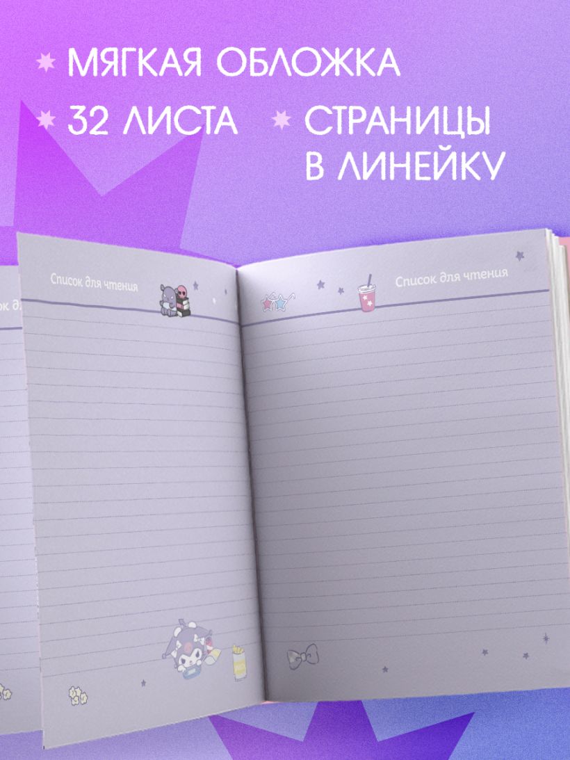 Читательский дневник с обаятельной злодейкой Куроми, в котором каждая страница наполнена милыми иллюстрациями и удобной сеткой для записи своих мыслей и впечатлений от прочитанных книг!